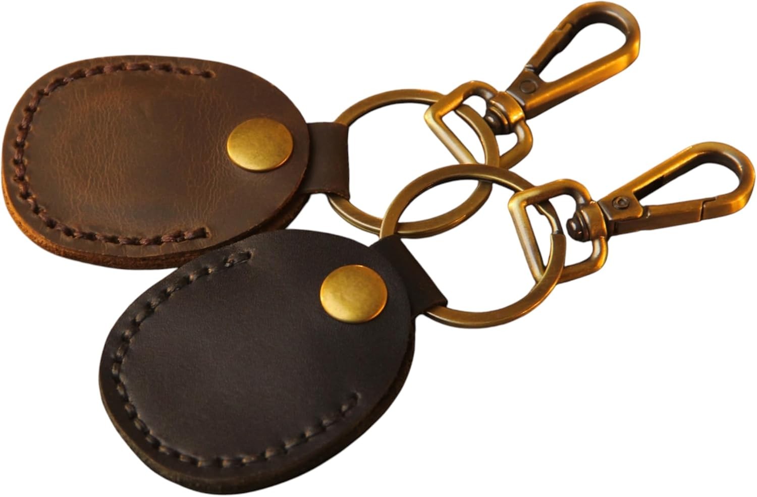 Airtag Keyring Holder 2 Pack-Genuine Leather Air Tag with 2Pcs (Brown+Coffee)