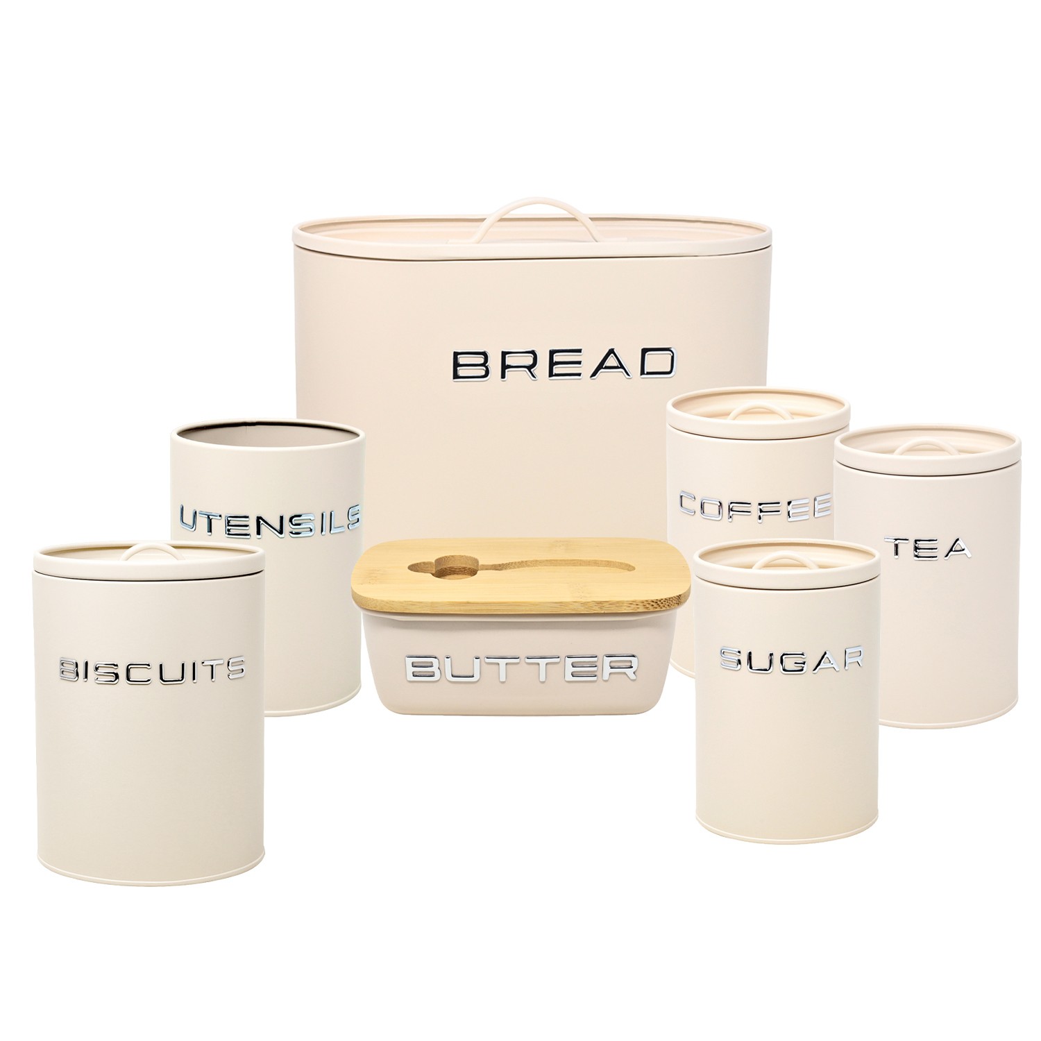 Butter Dish Utensil Holder Bread Biscuit Storage Tin Airtight Canister Cream 7Pc