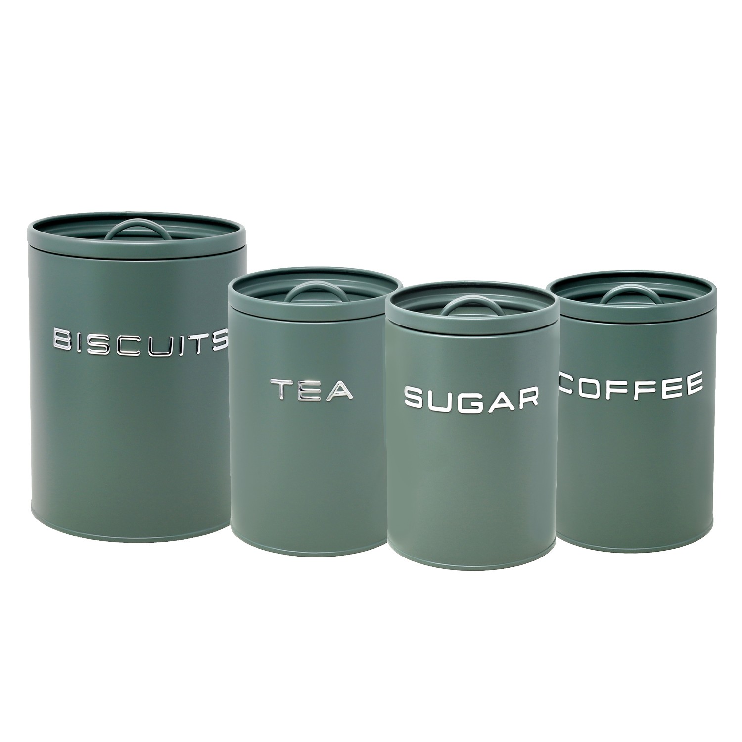 Biscuit Tea Coffee Sugar Canister Set Airtight Food Storage Tin Sage Green 4Pcs
