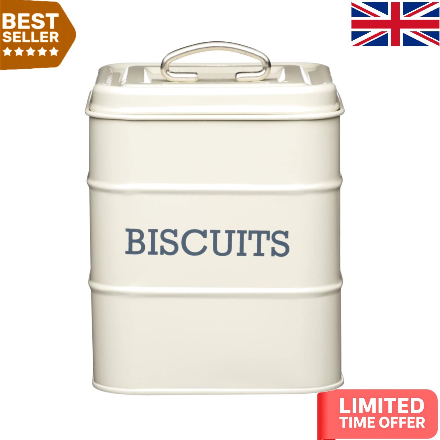 andrew james Vintage Metal Biscuit Tin – Large Airtight Cookie & Biscuit Storage Jar – Snug Fit Lid to Keep Contents Fresh – Stylish Retro Biscuit Barrel – Ideal for Kitchen Worktop – 3 Colours