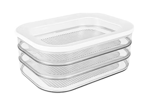 Airtight Plastic Storage Containers For Refrigerator Fridge Organizer Bins For Lunch Meat Salmon Bacon Deli Slices(White-Three layer)