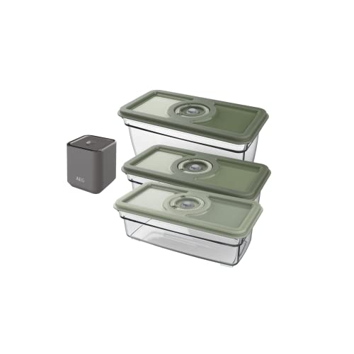 AEG AVFK1+ Vacuum Fresh Kit+ (Hand Vacuum Pump, 3 Airtight Vacuum Containers with Date Function, Fast Vacuuming of Food, Preserving Nutrients)