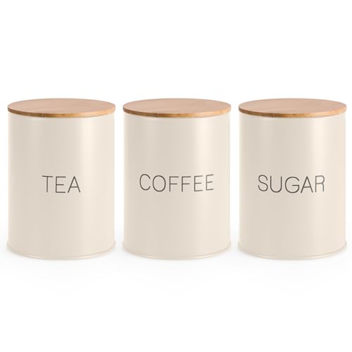 EHC Tea Sugar Coffee Canisters, Tea Sugar Coffee Containers Set of 3, Airtight Containers Jars, Cream