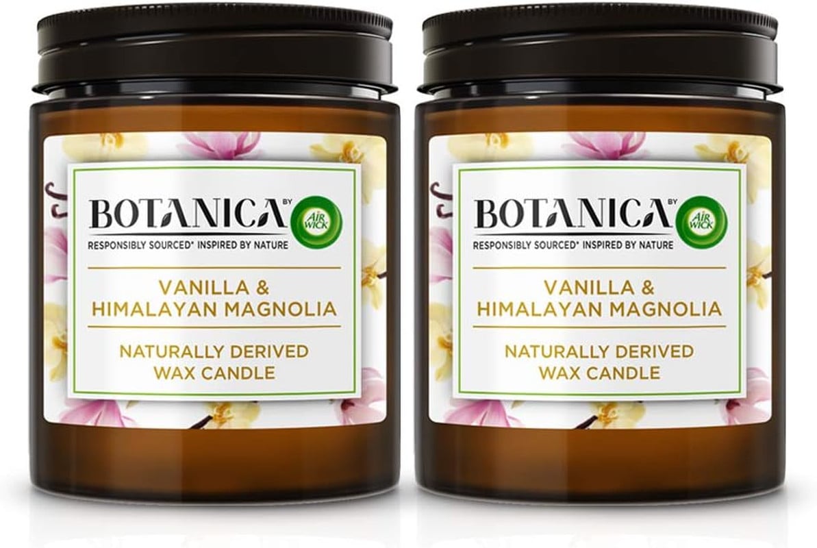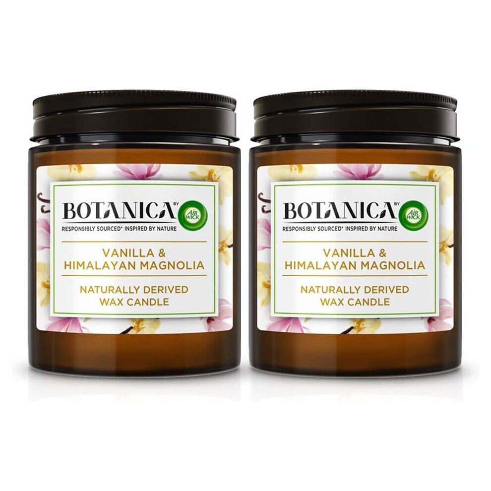 Botanica by AirWick Air Freshener Naturally Derived Wax Candle, VANILLA & HIMALAYA MAGNOLIA, Multipack of 2 x 40 hours, Up to 80 Hours Total Burn Time
