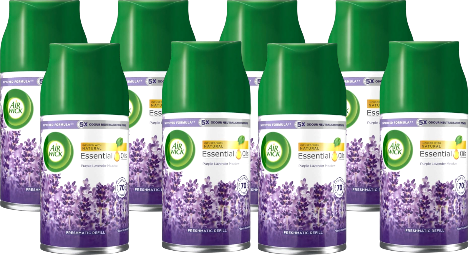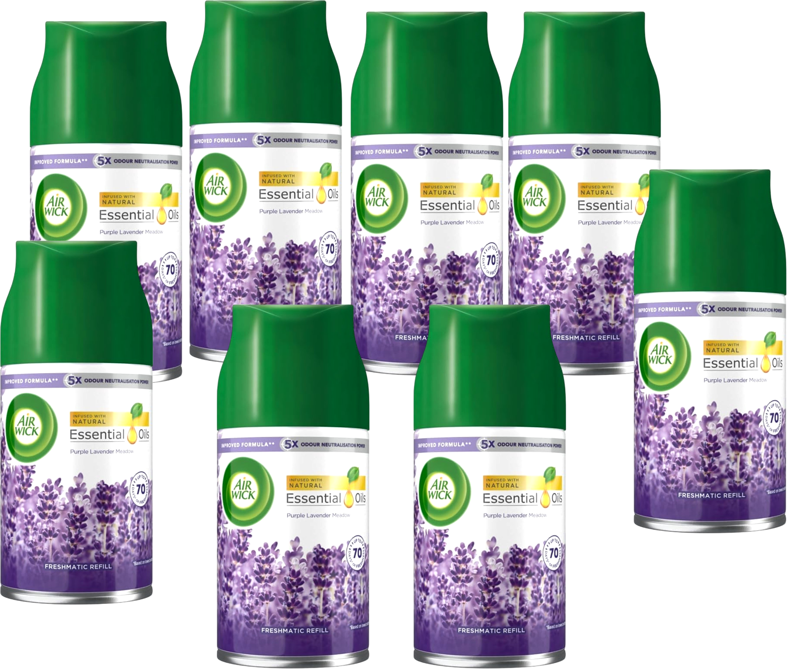 8 x AirWick Freshmatic Refill Purple Lavender Meadow Scent Air Freshener 250ml
