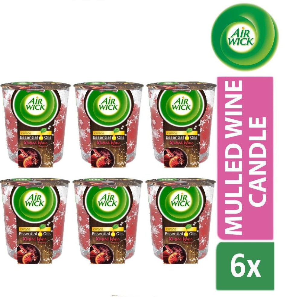 6 x Airwick Candle Air Freshener Candle With Essential Oils Mulled Wine 105g