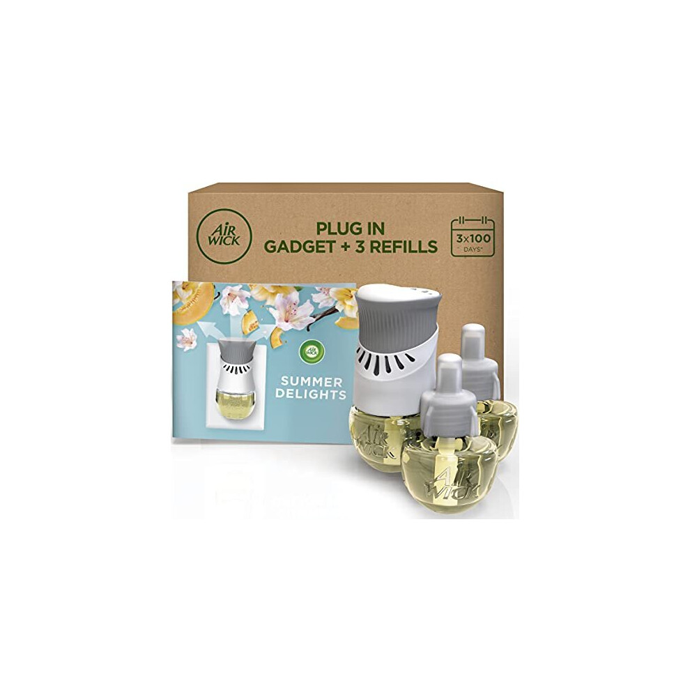 AirWick Air Freshener Plug In Diffuser Starter Kit, 1 Gadget and 3 Refills, Room Fragrance, Mega Value Starter Kit , SUMMER DELIGHT, Lasts Total Upto