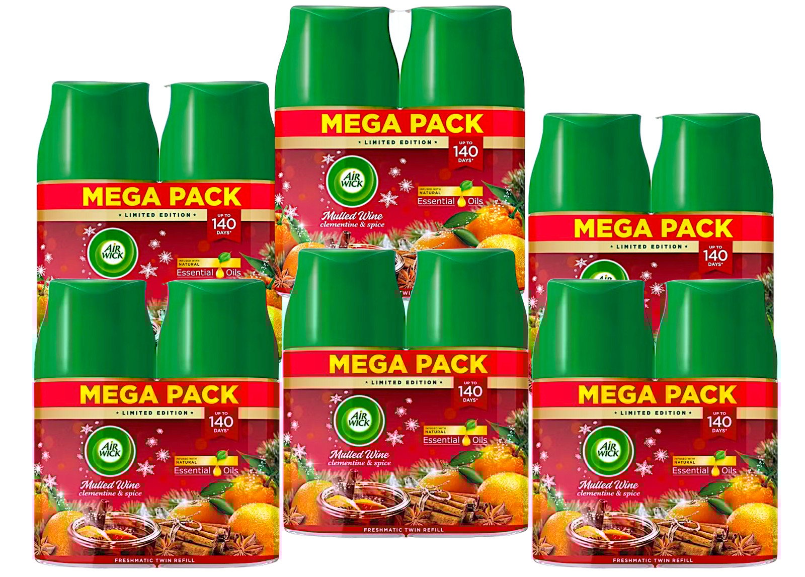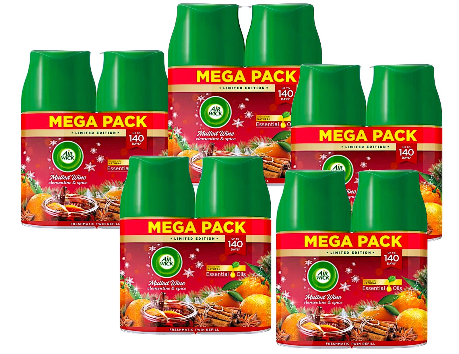 10 x AirWick Freshmatic Air Freshener Refill Mulled Wine Clementine Spice 250ml