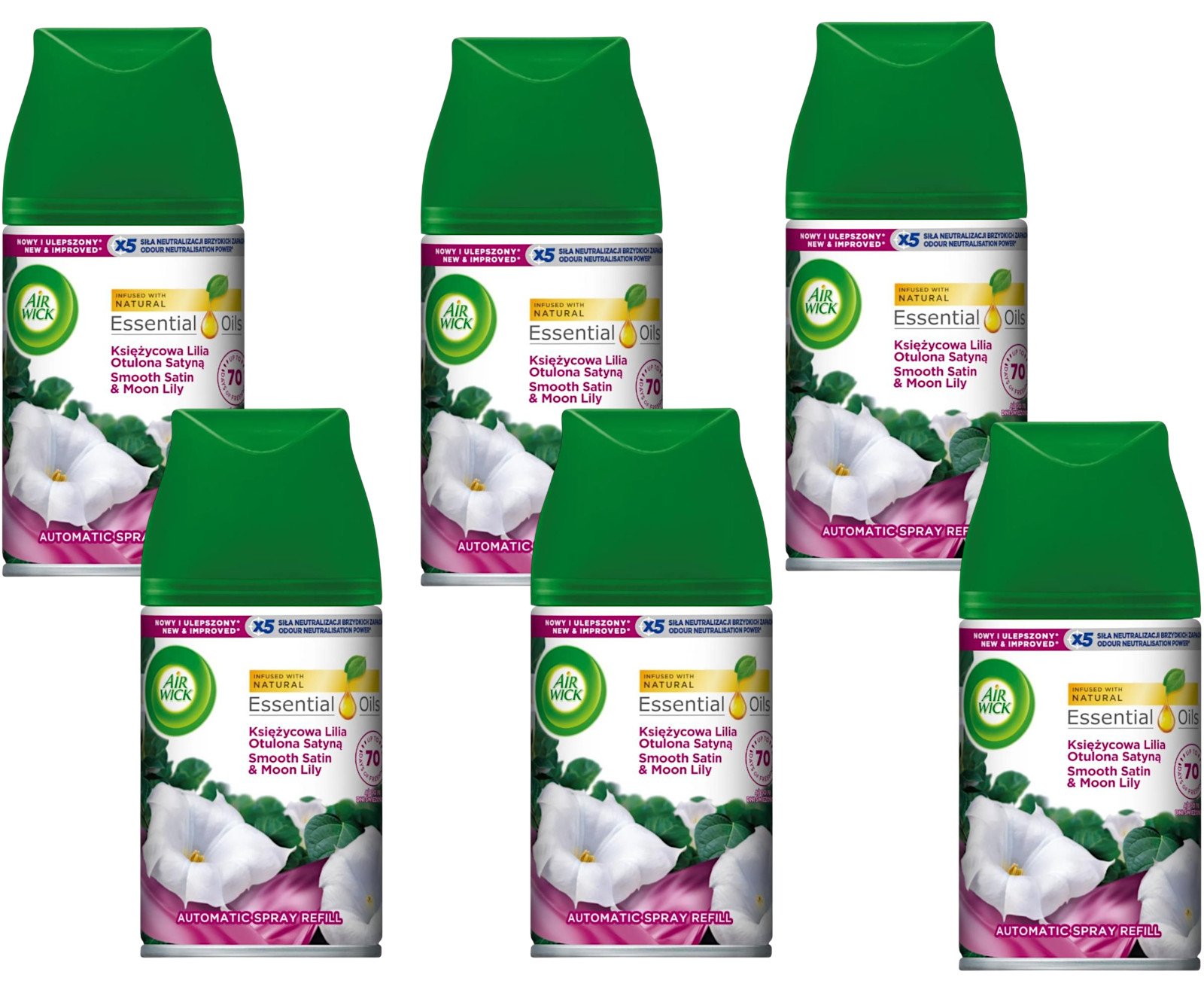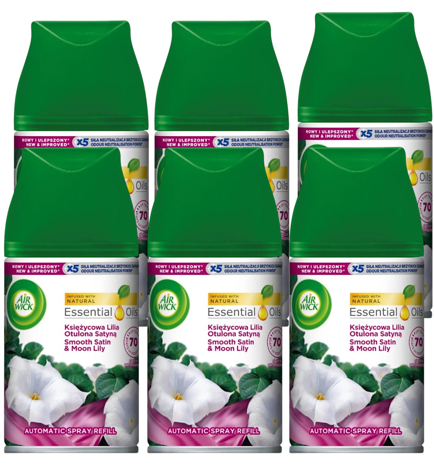 6x Air Freshener Airwick Essential Refill Smooth Satin & Lily Scent Refill 250ml