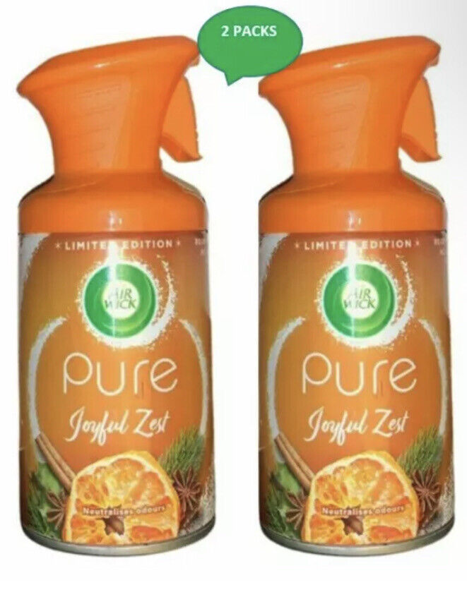 2 X Airwick Pure Air Freshener Spray 250ml Joyful Zest Neutralises Odours
