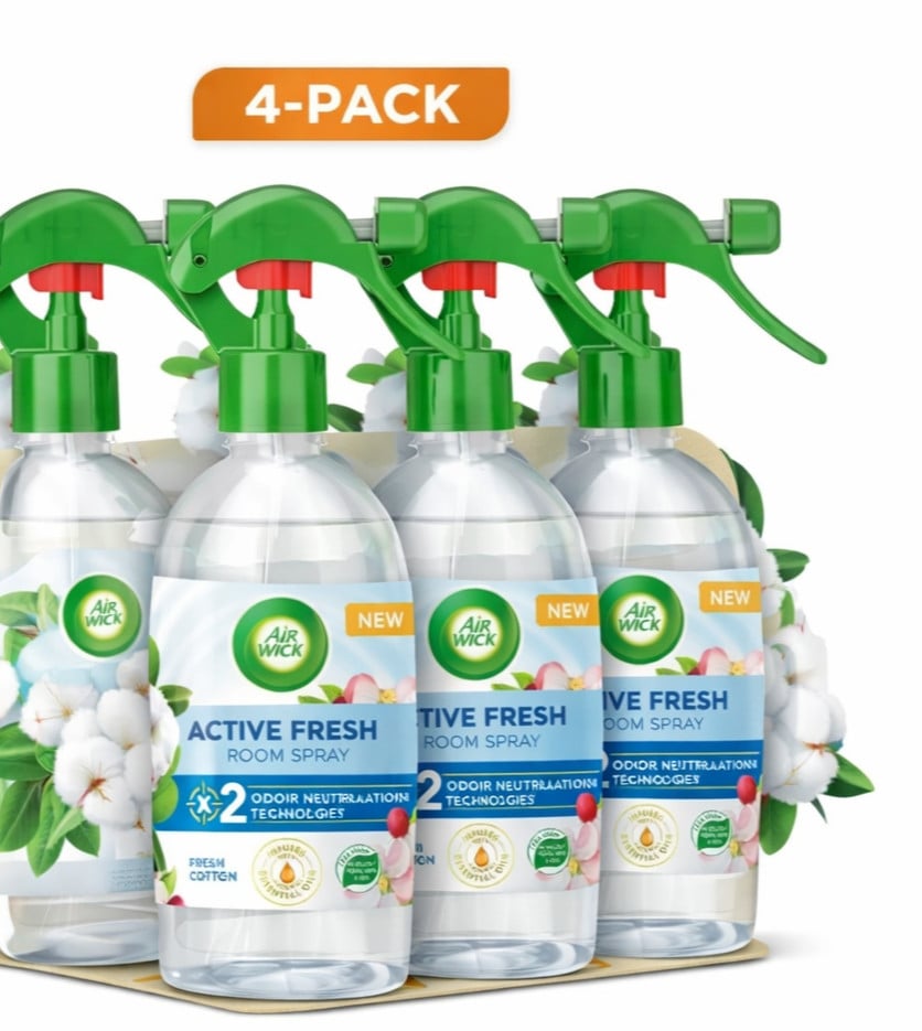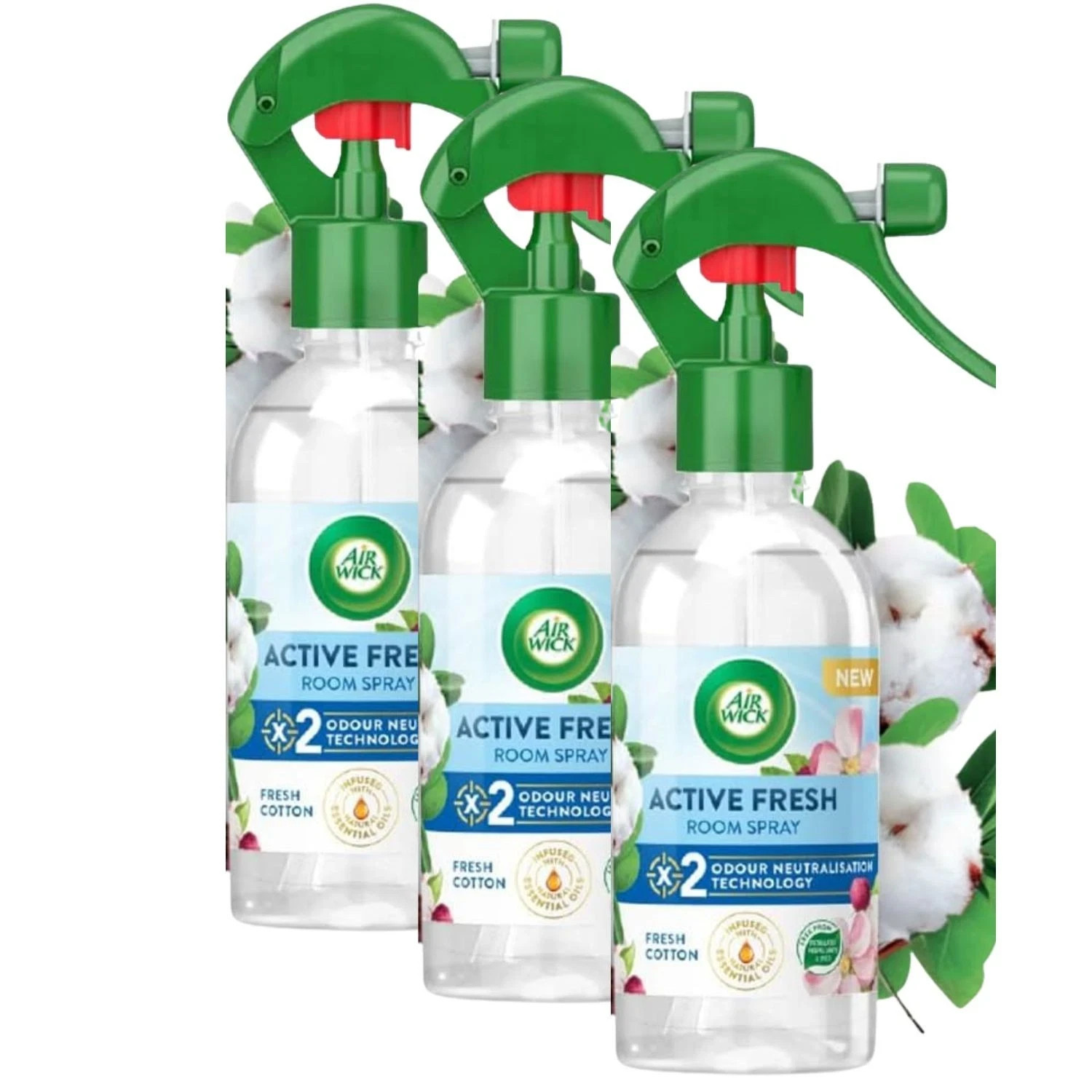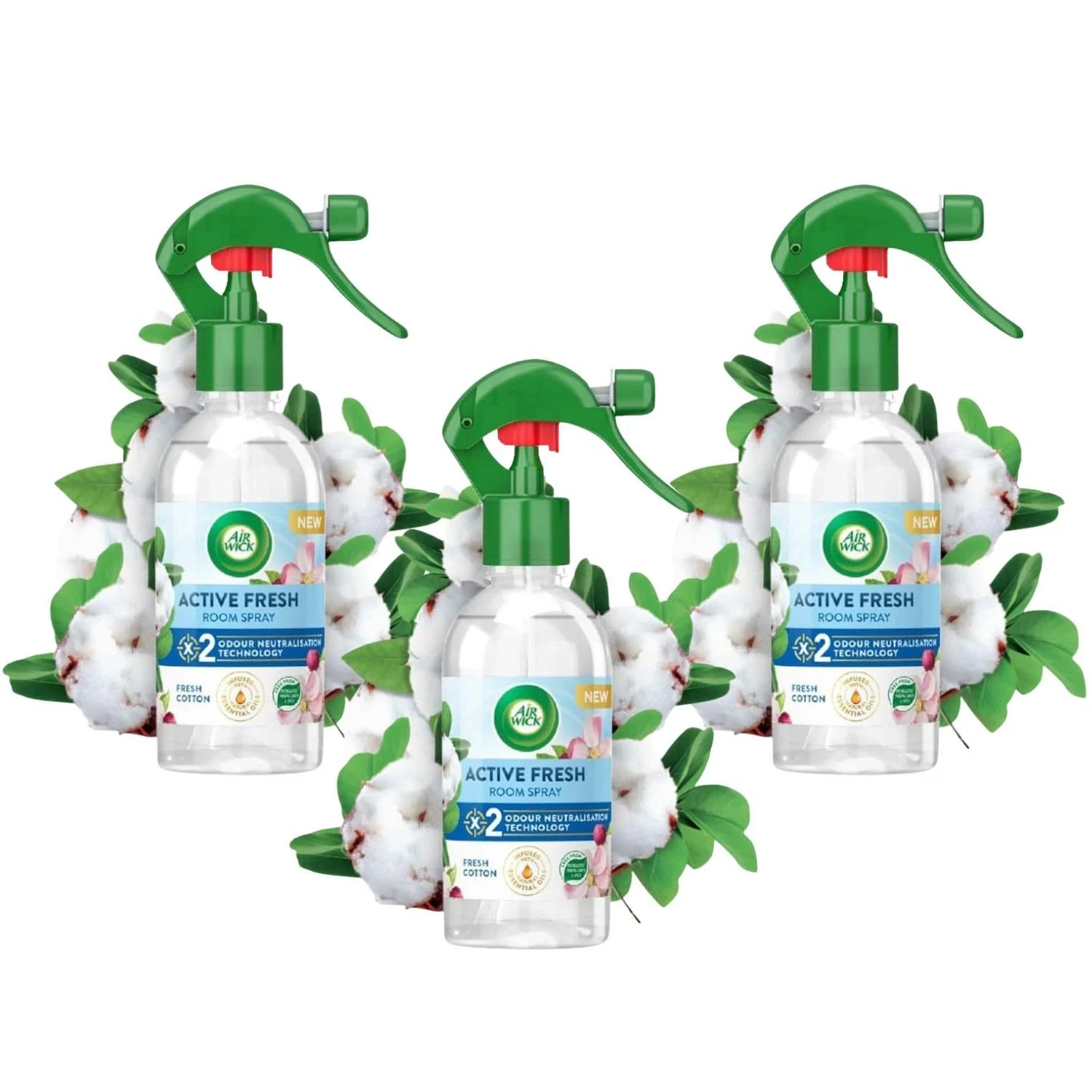 Airwick Air Freshener Active Fresh Room Spray Fresh Cotton 236ml-Pack-3