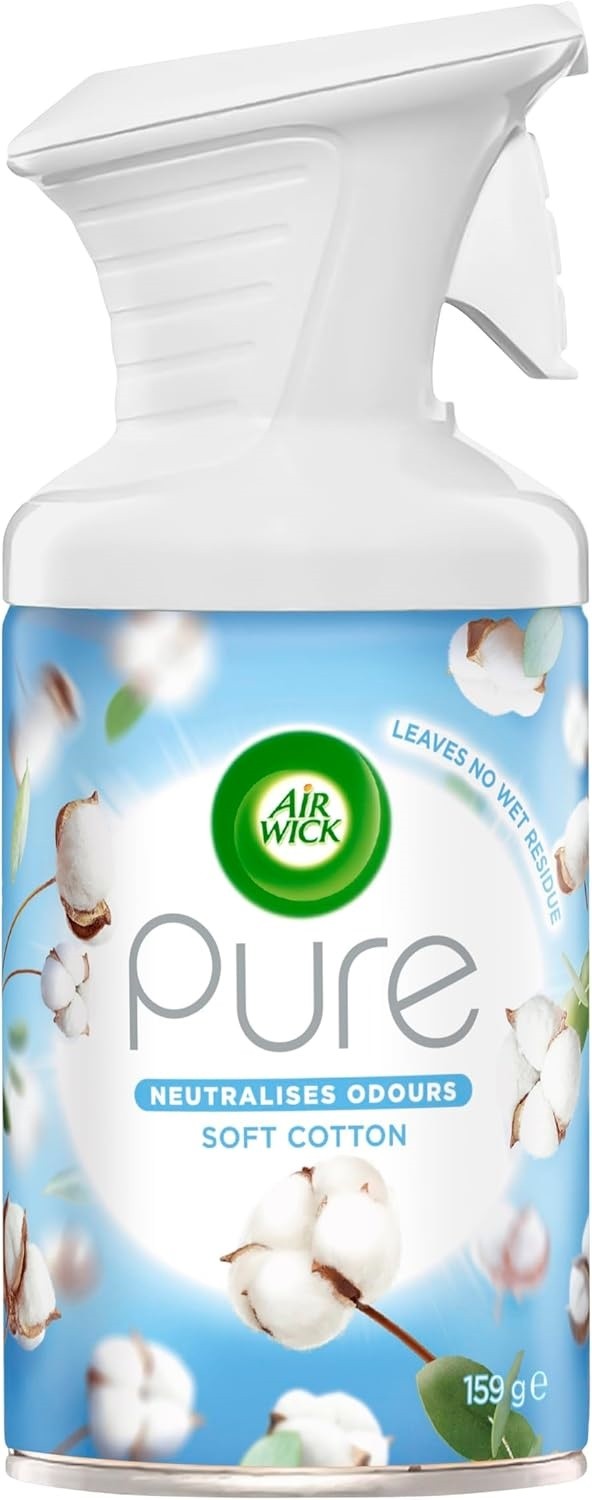 Airwick Pure Soft Cotton Air Freshener Spray 250ml No Wet Fall Out Odour Stop