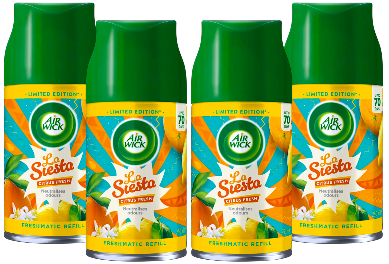 AIRWICK FRESHMATIC Citrus Fresh La Siesta Scent Air Freshener Refill 4 x 250ML