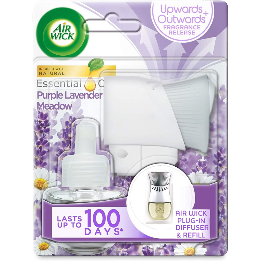 AirWick Essential Oils Air Freshener, Electrical Plug in Kit Gadget and Refill, Purple Lavender Meadow, Single unit, Lasts Total Up to 100 days