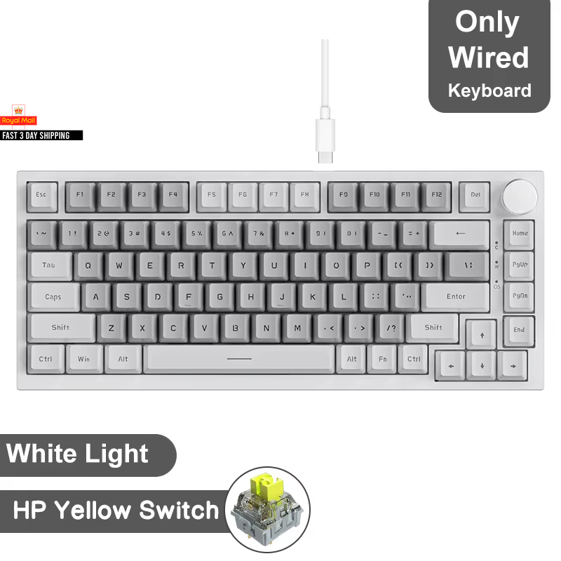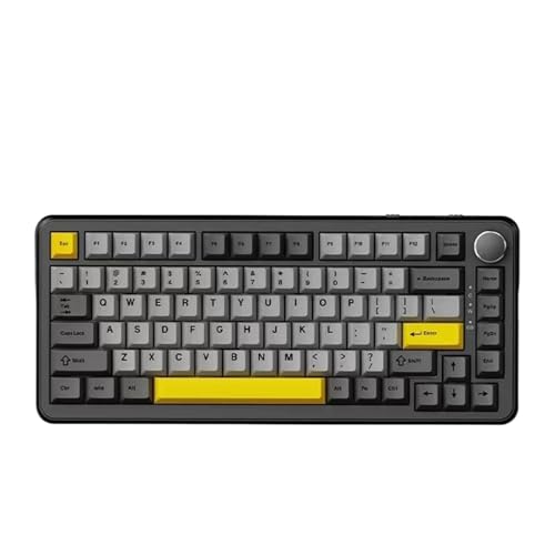 AJAZZ AK820 Wired Mechanical Keyboard, 75% Gaming Keyboard with Volume Control Knob, PBT Keycaps, 82 Keys, Five-Layer Sound Insulation Pad, South-Oriented RGB, Full-Key Hot Swap, Grey White Yellow