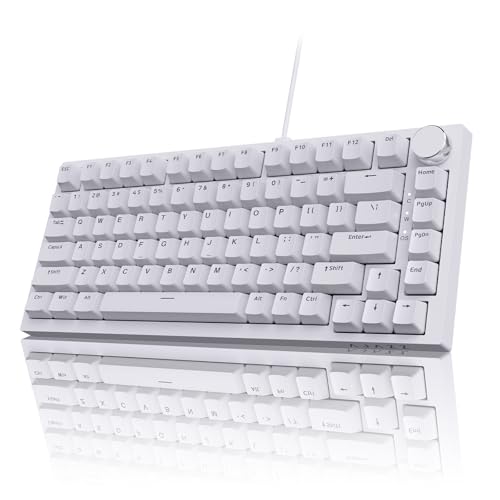 AJAZZ AK820 Wired Mechanical Keyboard, 75% QWERTY Layout 82-Key Hot-Swappable Gaming Keyboard with Volume Control Knob, PBT Keycaps, Blue Switches, Ice Blue North-Facing LED Lighting Effect, White