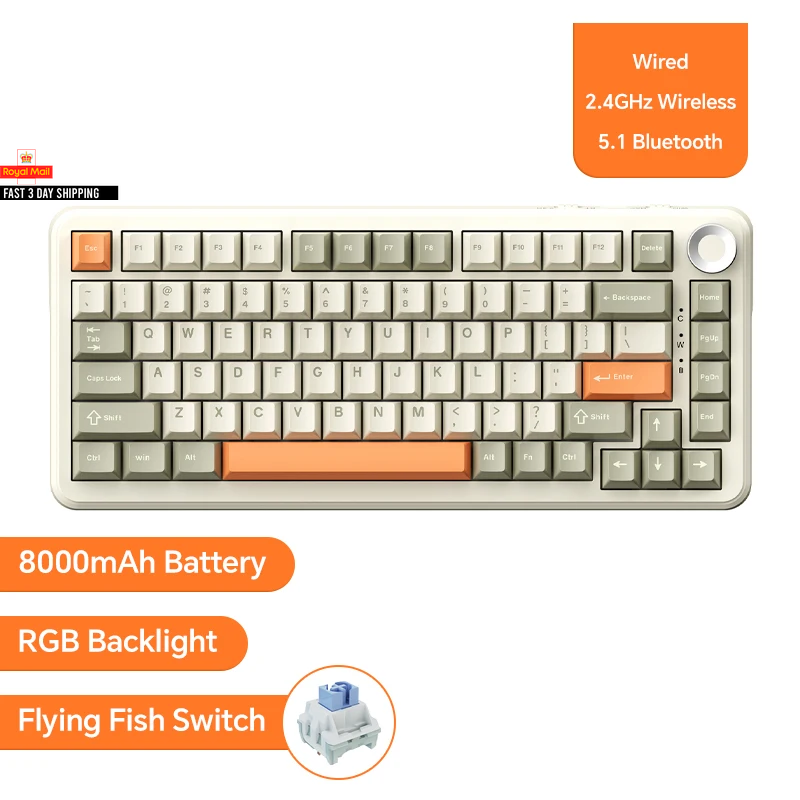AJAZZ AK871 Wireless Gaming Keyboard 75%, Bluetooth5.0/2.4G Dual Modes, TKL 80%