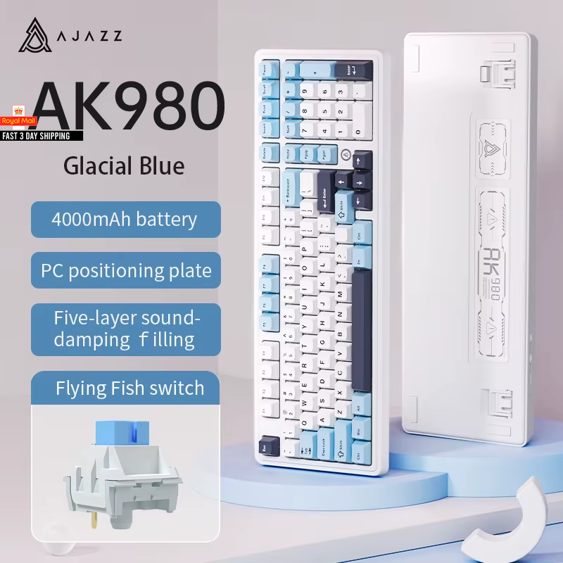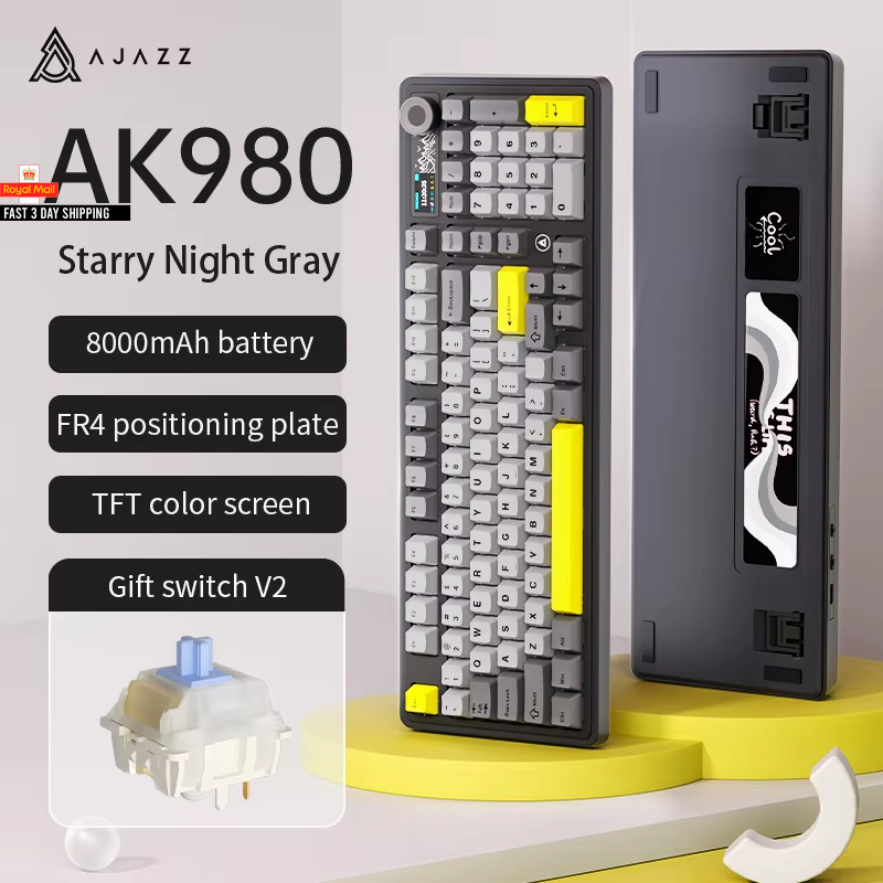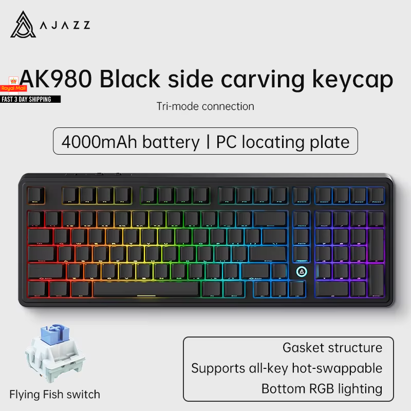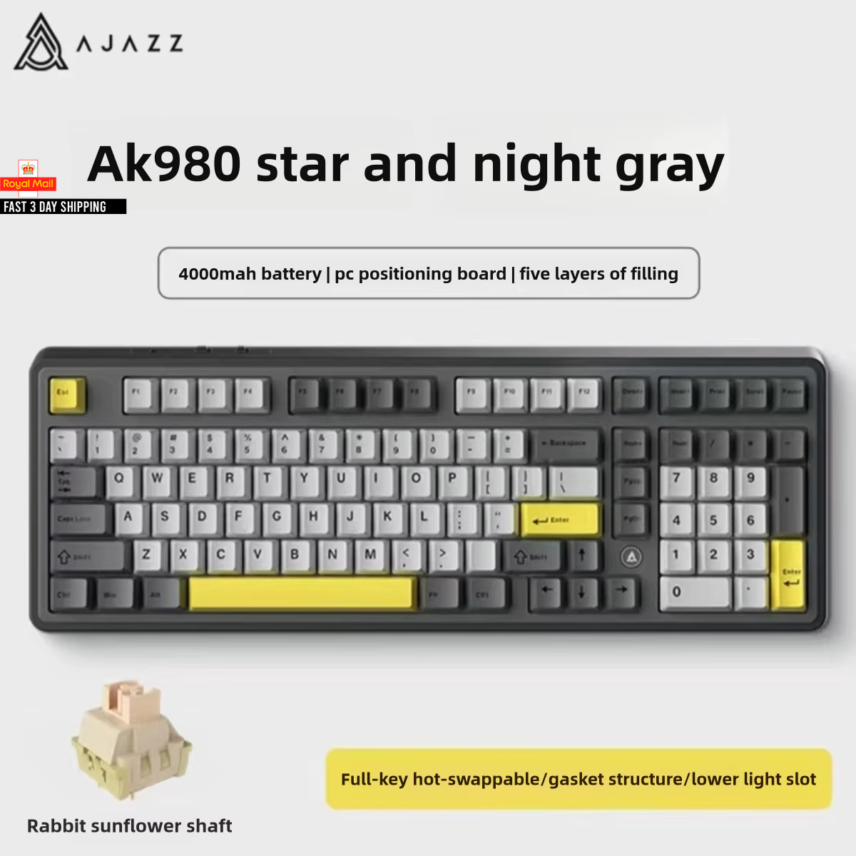 AJAZZ AK980 Wireless Mechanical Gaming Keyboard,Tri-Mode Bt5.0/2.4Ghz/Usb-C Hot