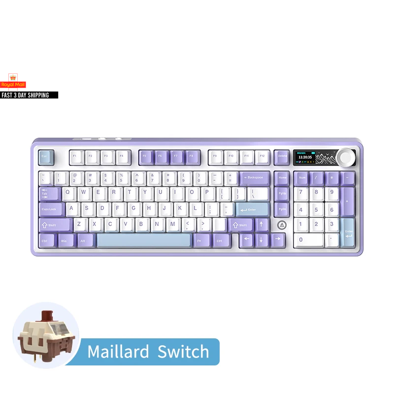 Ajazz AK820 Pro 75% Mechanical Tri-Mode Keyboard, QWERTY US layout, Gasket Mount, Wired/Bluetooth/2.4G, TFT Display, RGB Backlit, Hot-Swappable, Sound-Dampening Foam, PBT Keycaps, Compatible with Win/Mac/PC-Flying Fish Switch Purple