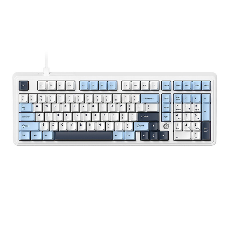 AJAZZ AK980 98% Wired Mechanical Keyboard, QWERTY US layout, Gasket Mount, Rainbow Backlight - Hot-Swap Support- Daydream Switch - White&Blue