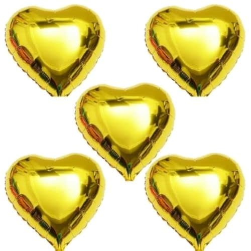 Inflate Decorate 18 inch Large Star Balloons Foil Baloons Helium or Air, 5 PACK (5pcs Gold Hearts)
