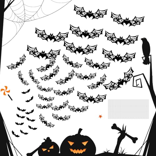 Bcautay Halloween Bat Decorations 3D Wall Stickers 4 Sizes Black PVC Bat Window Stickers for Windows Wall Home Door, Outdoor Indoor DIY Halloween Party Supplies - 48pcs