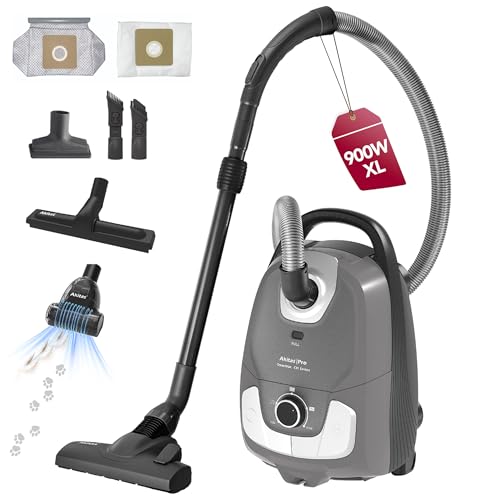 Akitas C11 Turbo 900W Bagged Vacuum Cleaner –Extra Turbo Pet Hair Brush, 7m Power Cord & 10m Working Radius, 70dB Quiet Operation, Adjustable Suction, Large Capacity, for Hard Floors & Carpets