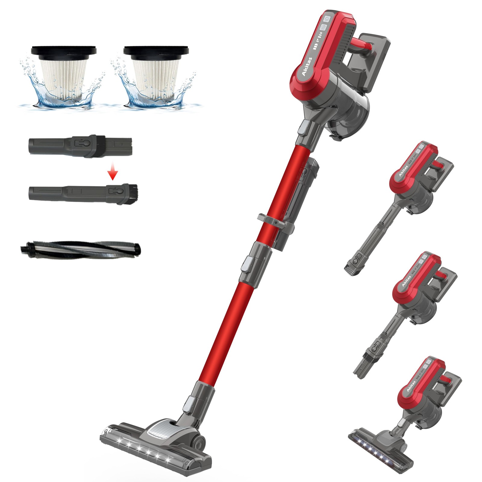 Akitas V8 3-in-1 Cordless Hoover Vacuum Cleaner Handheld & Upright Lightweight 22.2 V 150 W, Rechargeable Lithium Battery for Floors Carpets and Pet Hair