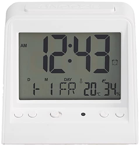 Acctim 12342 Auric Alarm Clock, White with Amazon Basics Batteries