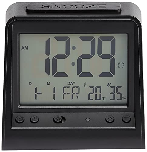 Amazon Basics Tabletop Digital Alarm Clock With Light Temp & Date Display Black