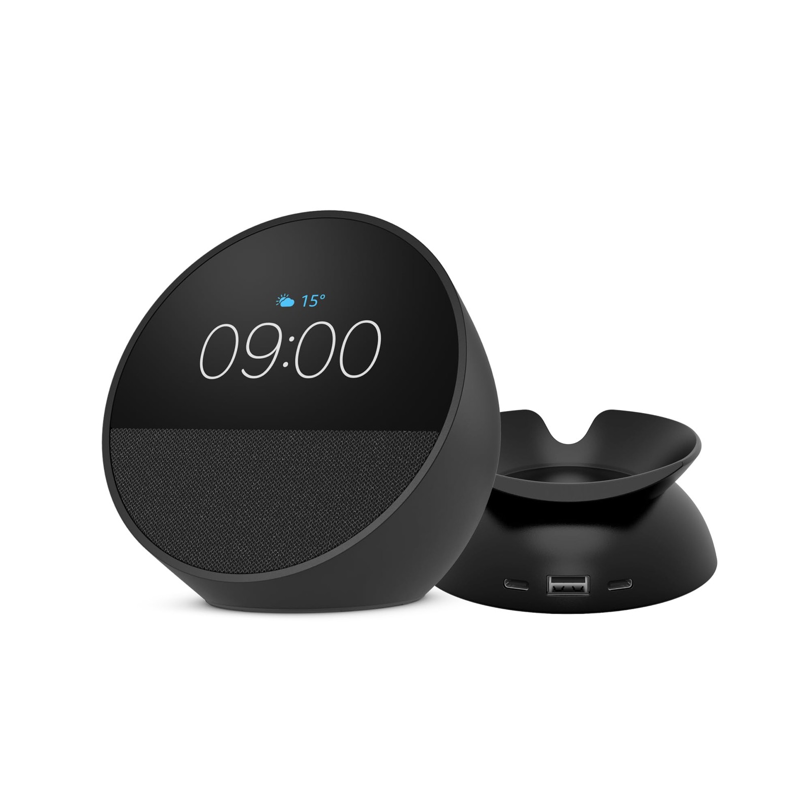 Echo Spot (2024 Release), Smart Alarm Clock with Vibrant Sound + Alexa, Black