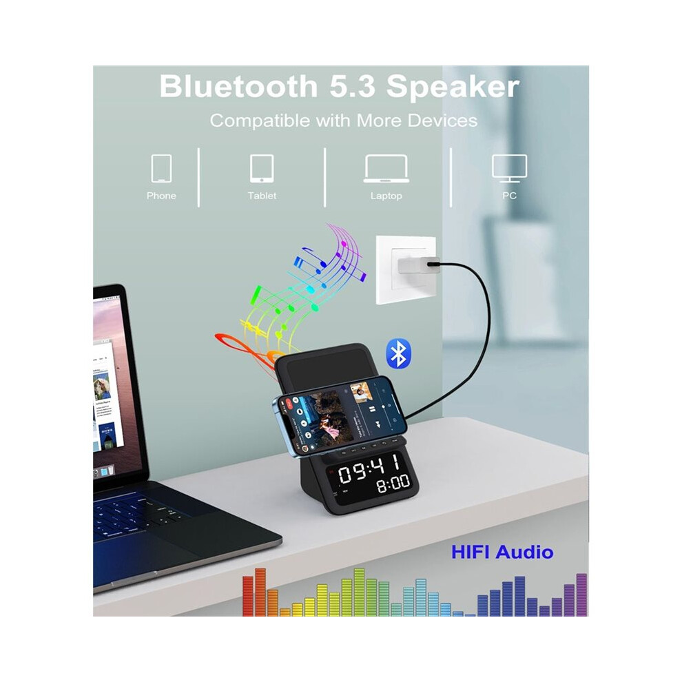 Digital Alarm Clock With 15W Wireless Charger For iPhone 16 15 Samsung S24 S23