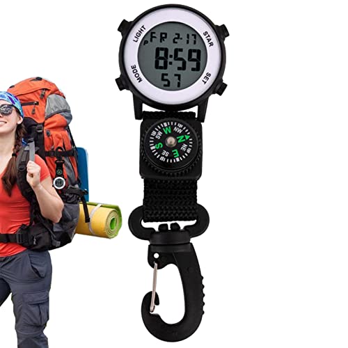 Generisch Compass Watch for Outdoor Activities - Glow In The Dark Digital Pocket Watch with Carabiner, Alarm Clock, Stopwath 12/24H Display | Survival Hiking Camping Backpacking Sports Wath