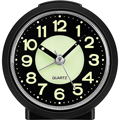 Jcobay Analogue Alarm Clock Simple Alarm Clocks Bedside Non Ticking Battery Powered Luminous Silent Clock with Snooze Light Glow in the Dark Table Clocks for Bedrooms Heavy Sleepers Desk Office Travel