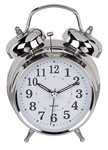 Out of the Blue Glow in the Dark Alarm Clock, Metal, Chrome, 8.0 x 6.0 x 9.0 cm