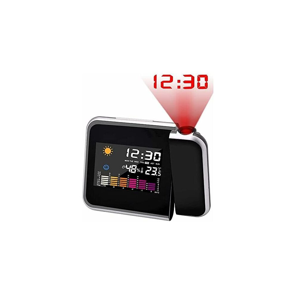 Projection Alarm Clock with 180° Projector, USB Charger, 3 Brightness, Snooze