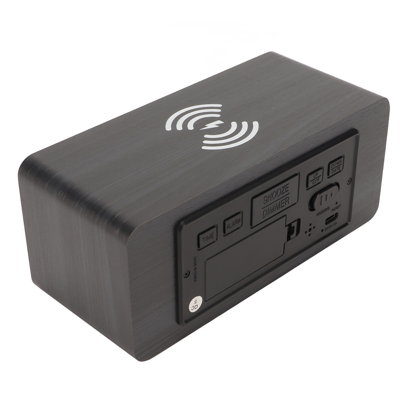 Wooden Digital Alarm Clock With Wireless Charging Black Adjustable Brightnes CUT