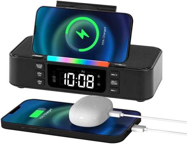 Uxsjakjsd Alarm Clocks for Bedrooms Alarm Clock with Wireless Charging Wireless Charging Station