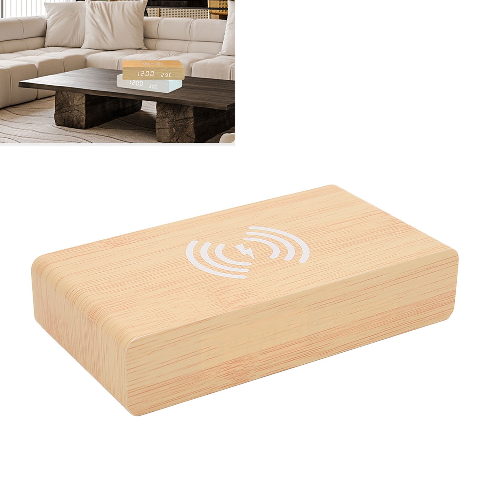 As PA Wooden Digital Alarm Clock With Wireless Charging 3 Alarms LED Display S