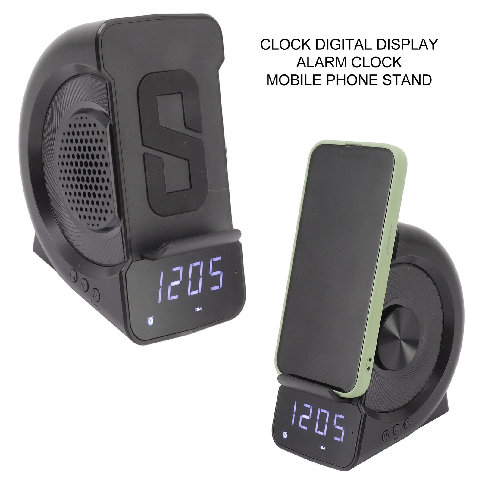 (Black)3 In 1 Speaker PC ABS Alarm Clock With Wireless Charging For JY