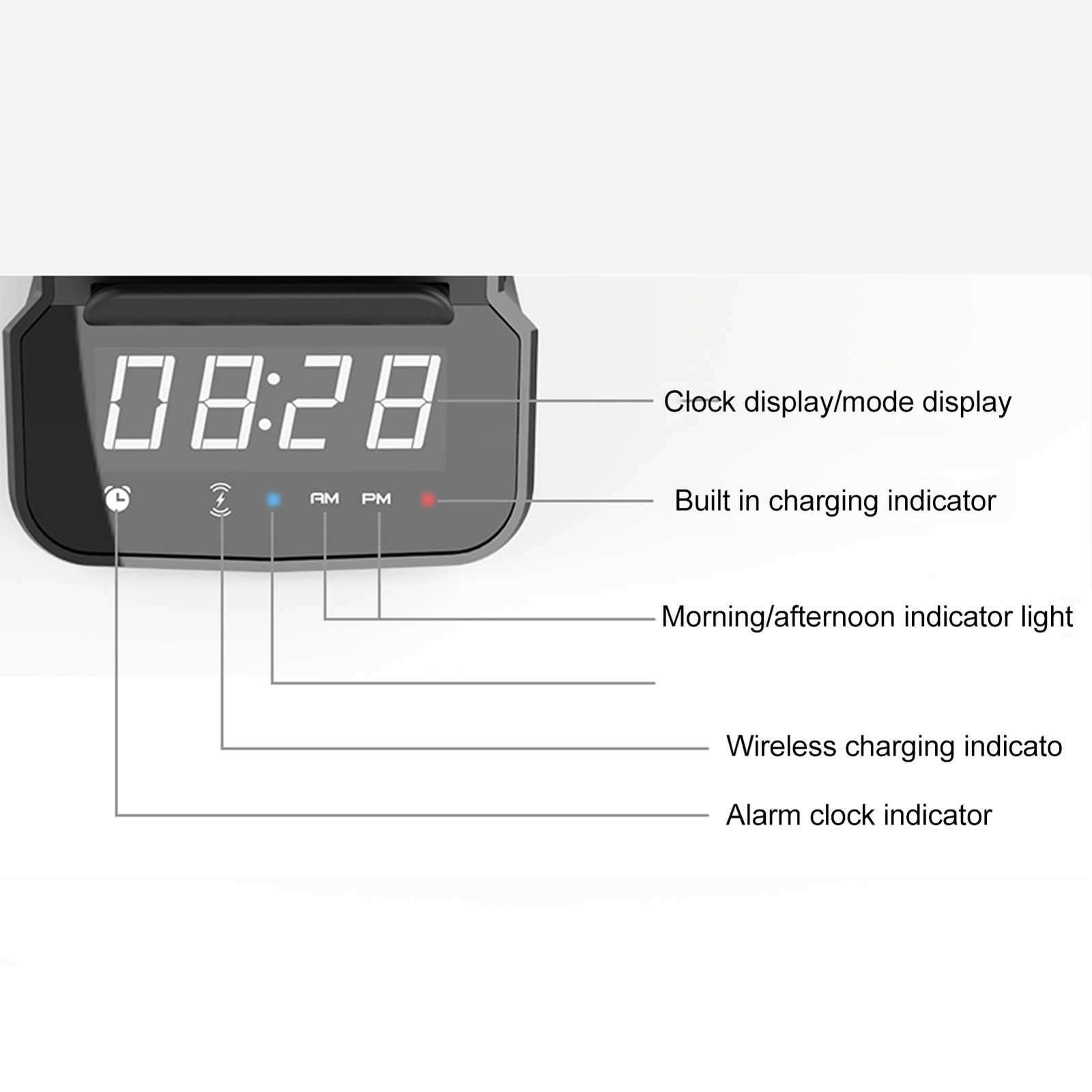 Digital Alarm Clock with Wireless Charging,Alarm Clocks Bedside,15W