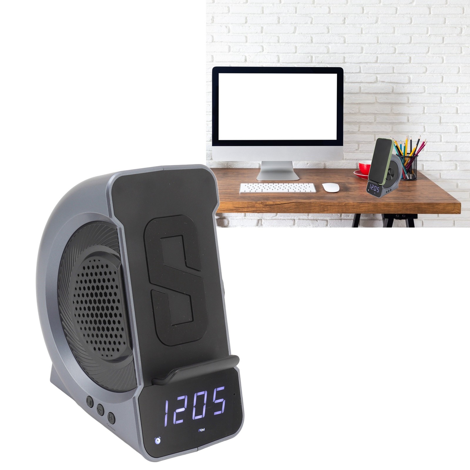 (18)3 In 1 Speaker PC ABS Alarm Clock With Wireless Charging For JY