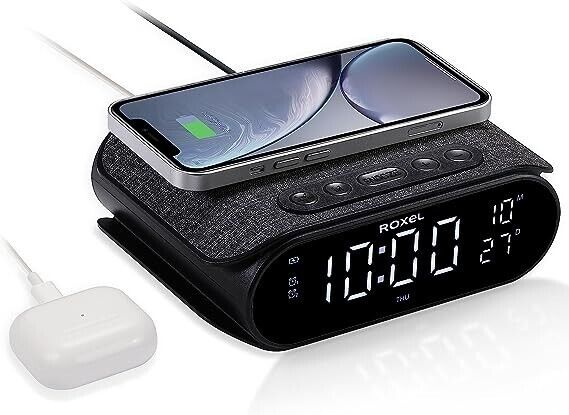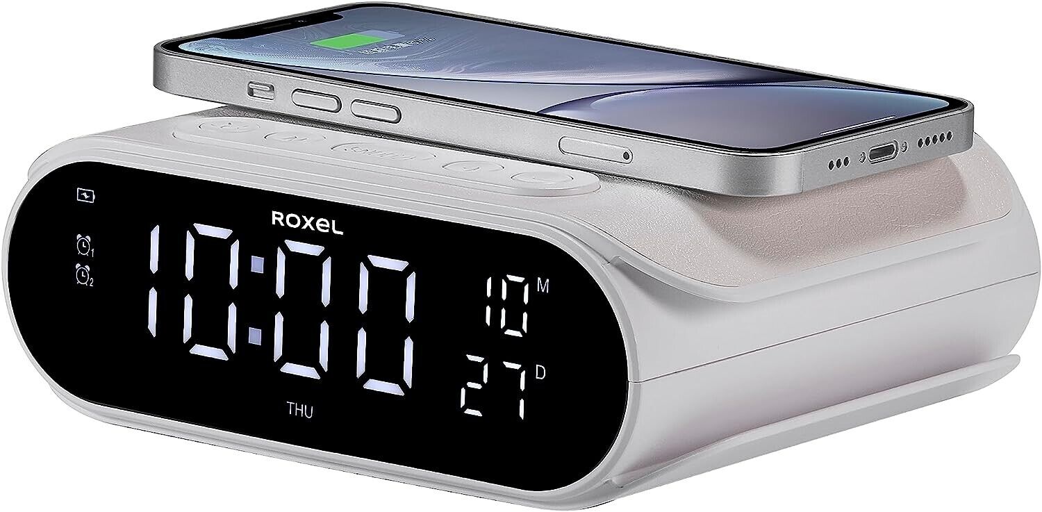 Roxel RAC-10 Bedside Alarm Clock With Super Fast Wireless Charging (5W/10W/15W)