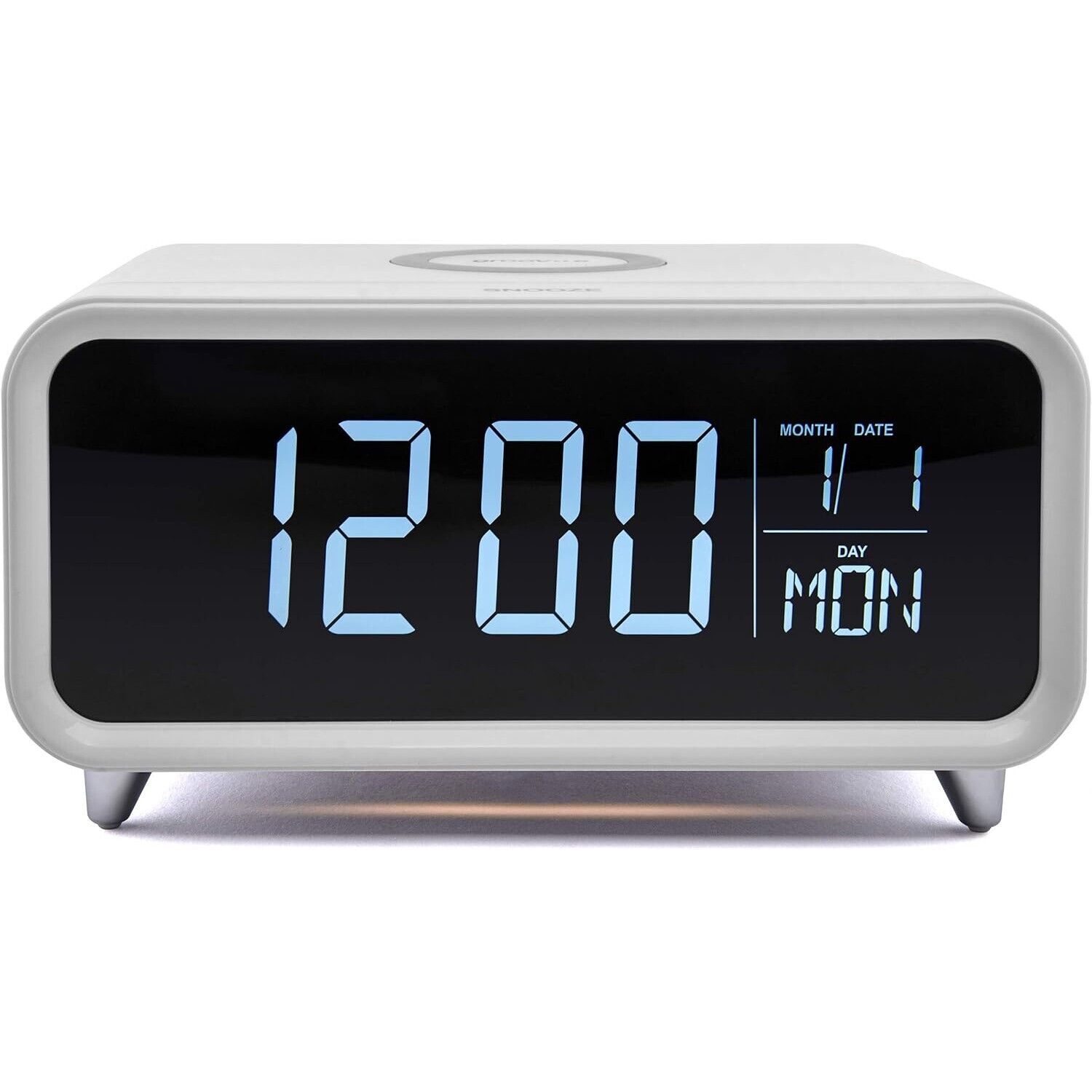 Groove Athena Digital Alarm Clock with Wireless Charging Pad & LCD Display White