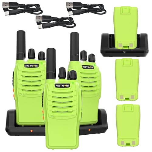 Retevis H777 Walkie Talkies, Rechargeable Battery, PMR446 Walkie Talkies for Adults, Easy to Use, Type-C, One-Key Alarm, LED Light, Radio Communication for Family, Outdoor, Camping (Green, 3 Pack)