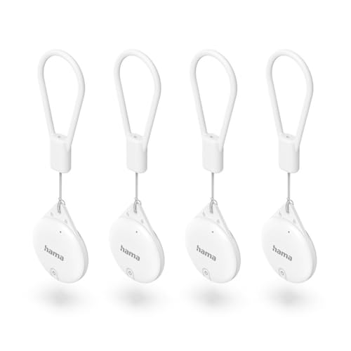 Hama Key Finder for Apple Where is App, 4 Pieces (Key Finder with Bluetooth, Alarm, Mobile Phone Key Finder for Keys, Wallet, Luggage, Animals, iOS, iPhone, iPod, iPad, Changeable Button Cell) White