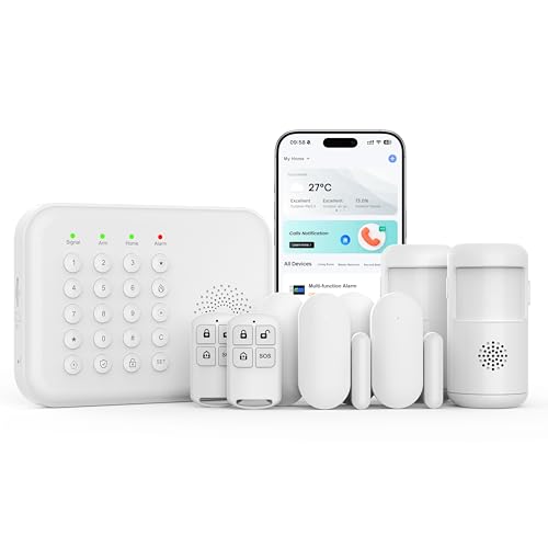 XNH 9-Piece Kit Wireless Home Security Systems, 4G/WiFi + GSM Auto-Dial Alarm System, App & Voice Control,No Monthly Fees,Compatible With Alexa & Google Assistant, Easy Installation For Home