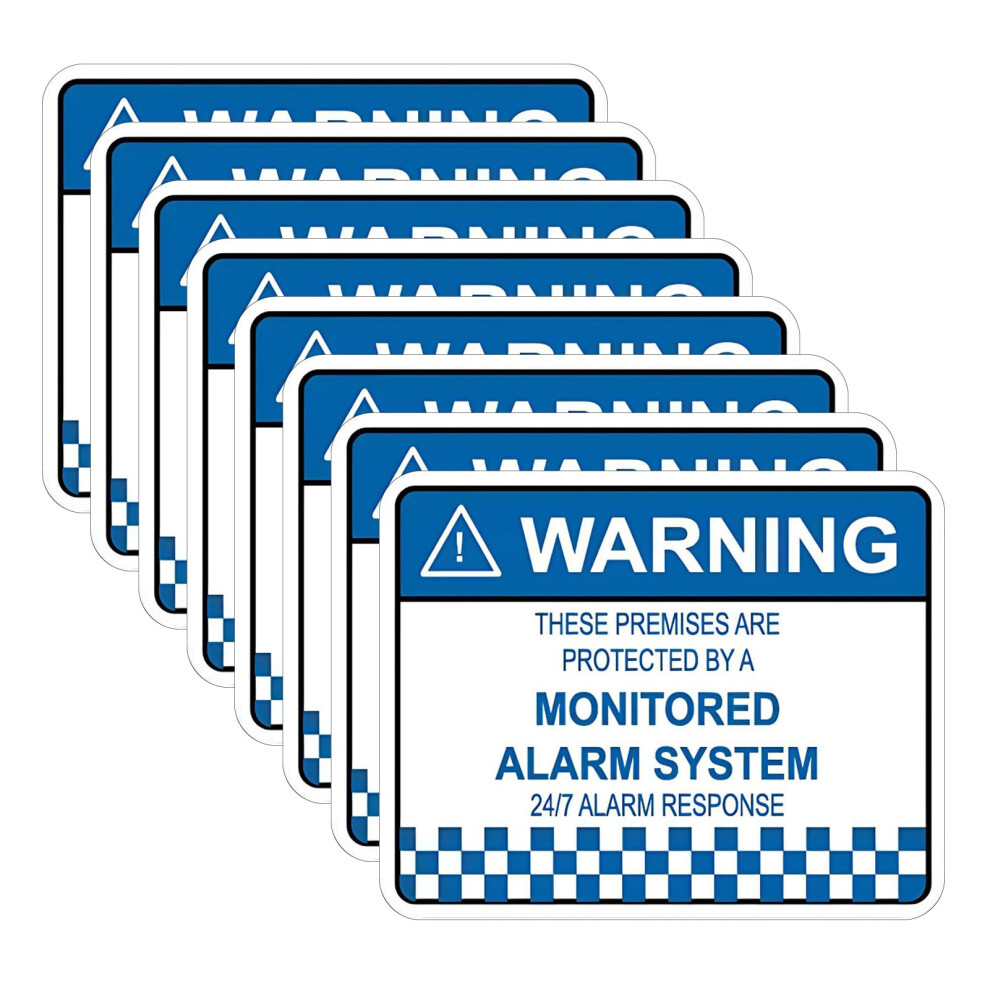 8pcs Waterproof Security Stickers for Alarm Systems, Self-Adhesive Blue and White Warning Signs for Home and Shop