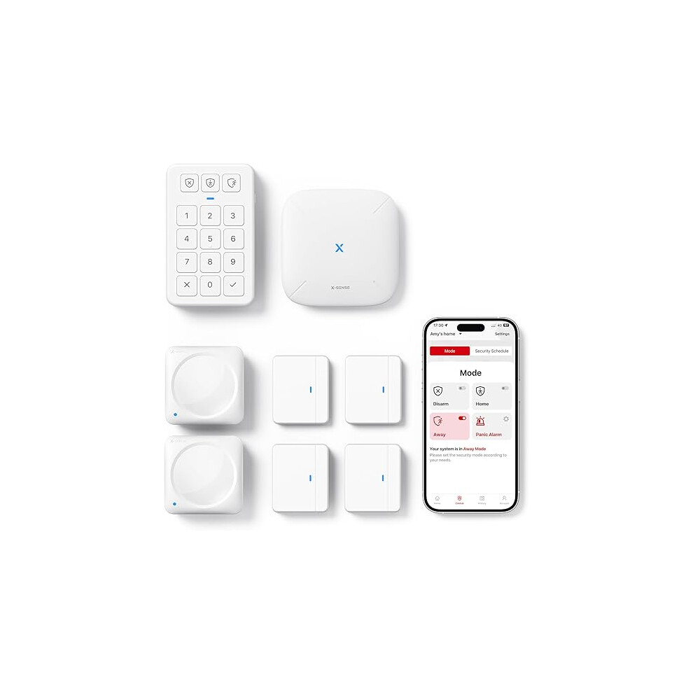 X-Sense Smart Home Security Systems, Wireless alarm systems, Works with Alexa, Supports Mobile App Alerts, Includes 1 Base Station, 2 Door Alarms, 1 Motion Alarm, 1 Keypad, AS05