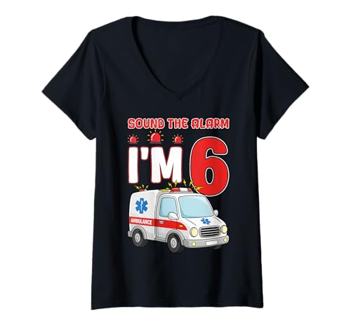 Women's Sound The Alarm I'm 6 Years Old Birthday Kid Ambulance V-Neck T-Shirt